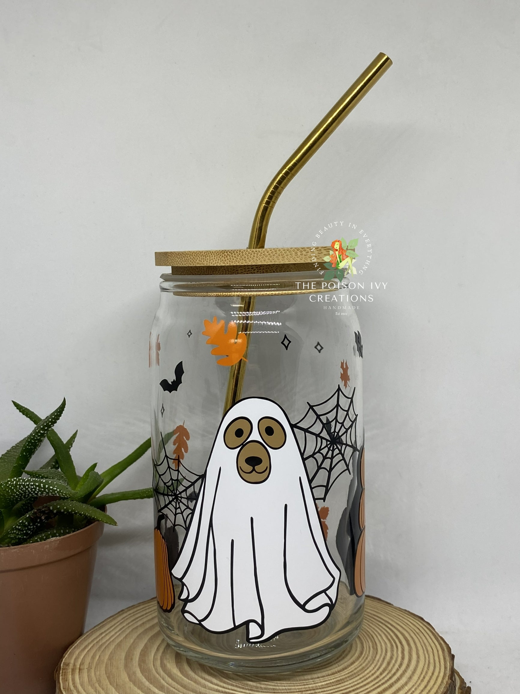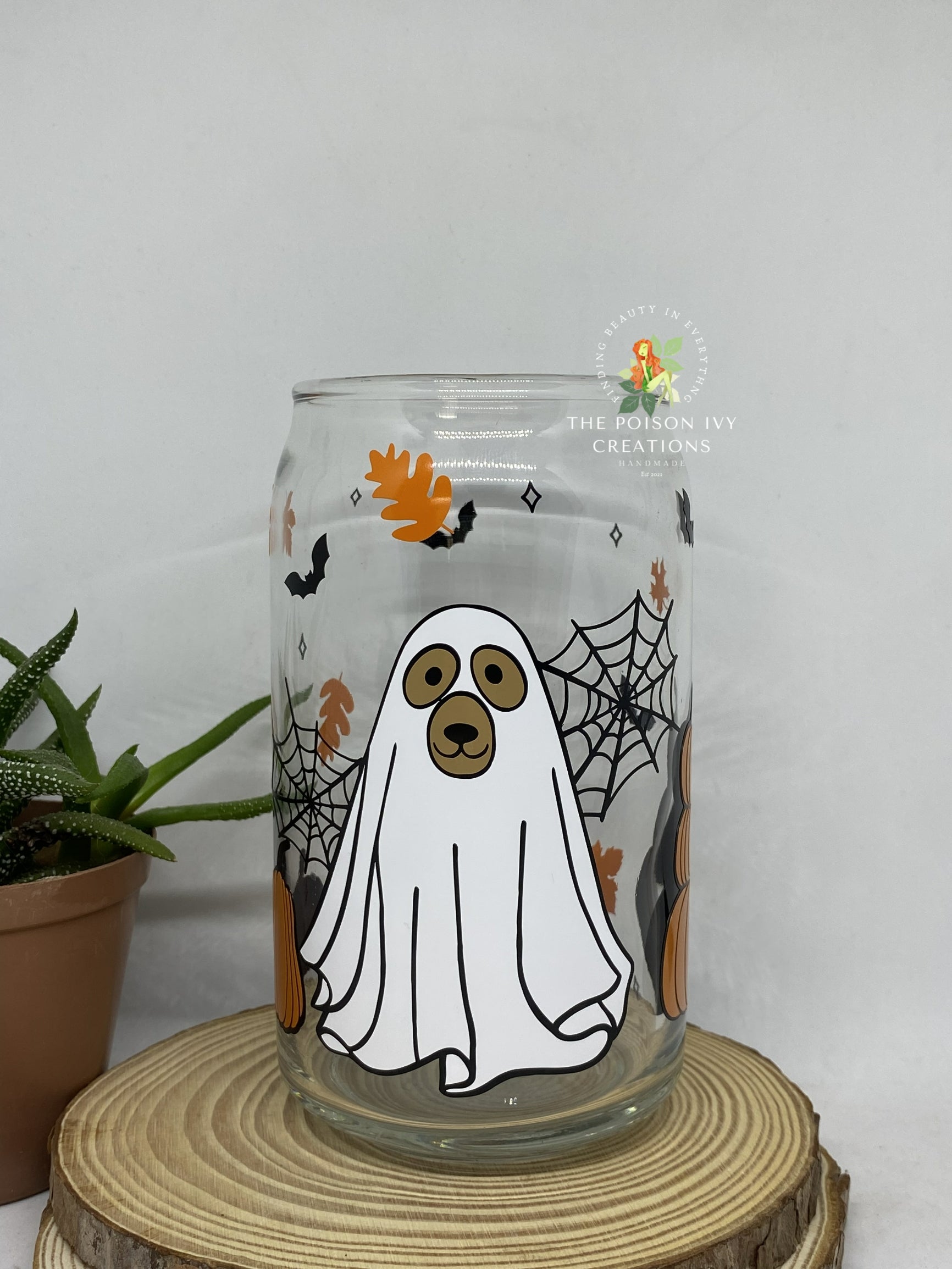 Elevate your Halloween gatherings with our Dog Ghost Can Glass. Made from durable material, it features a playful dog dressed as a spooky ghost, perfect for sipping your favorite beverages. Add a touch of playful charm to your parties and impress your guests with this unique and fun glass!