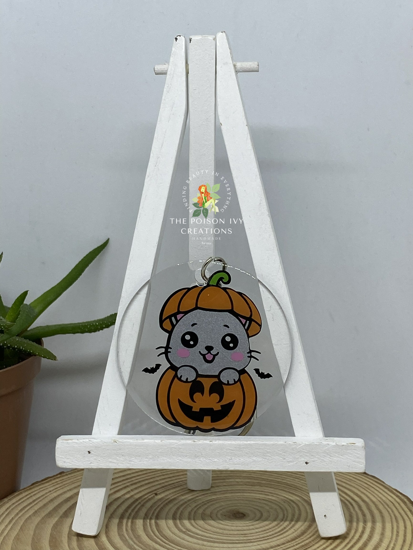 This durable Cat in Pumpkin Spooky Keyring is perfect for Halloween enthusiasts and cat lovers alike. The playful design features a cute cat and a spooky pumpkin, making it a fun addition to your keychain. With its sturdy construction, it will withstand everyday use while adding a touch of Halloween spirit.